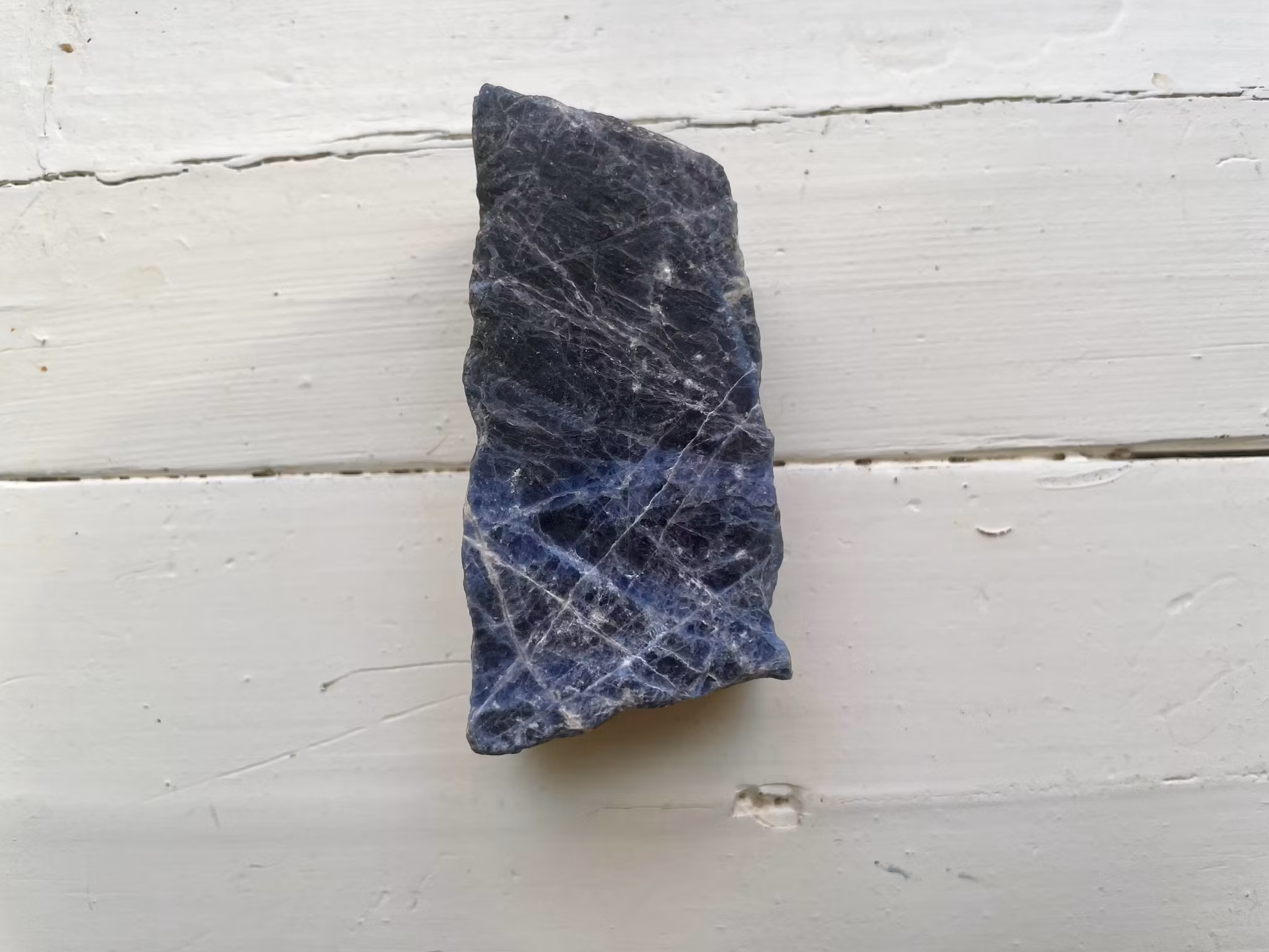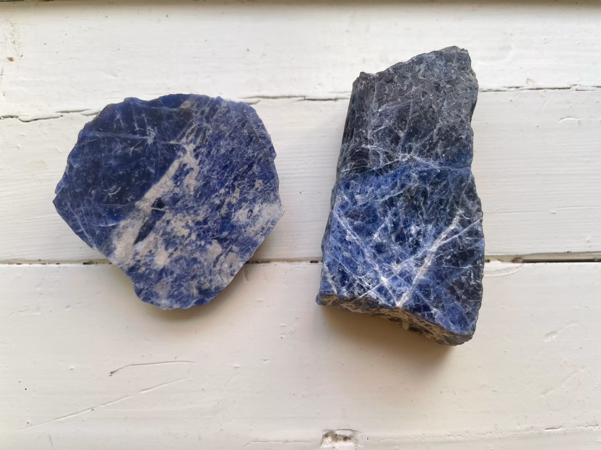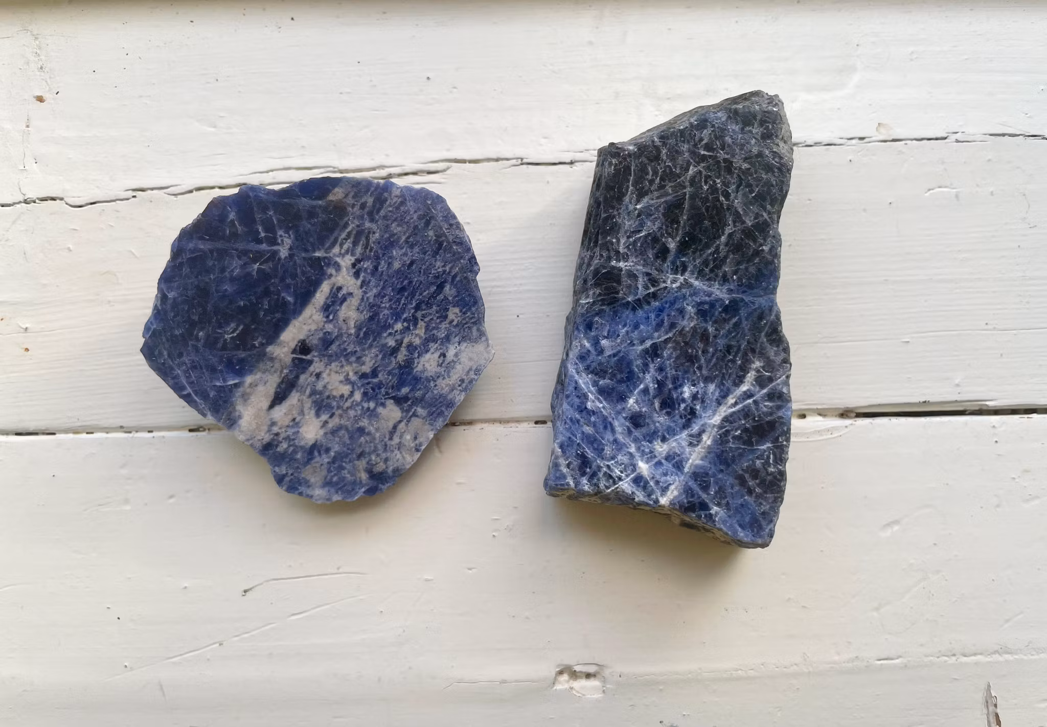 Fina mörkblåa sodalit med sina vita ådror och är även polerade.