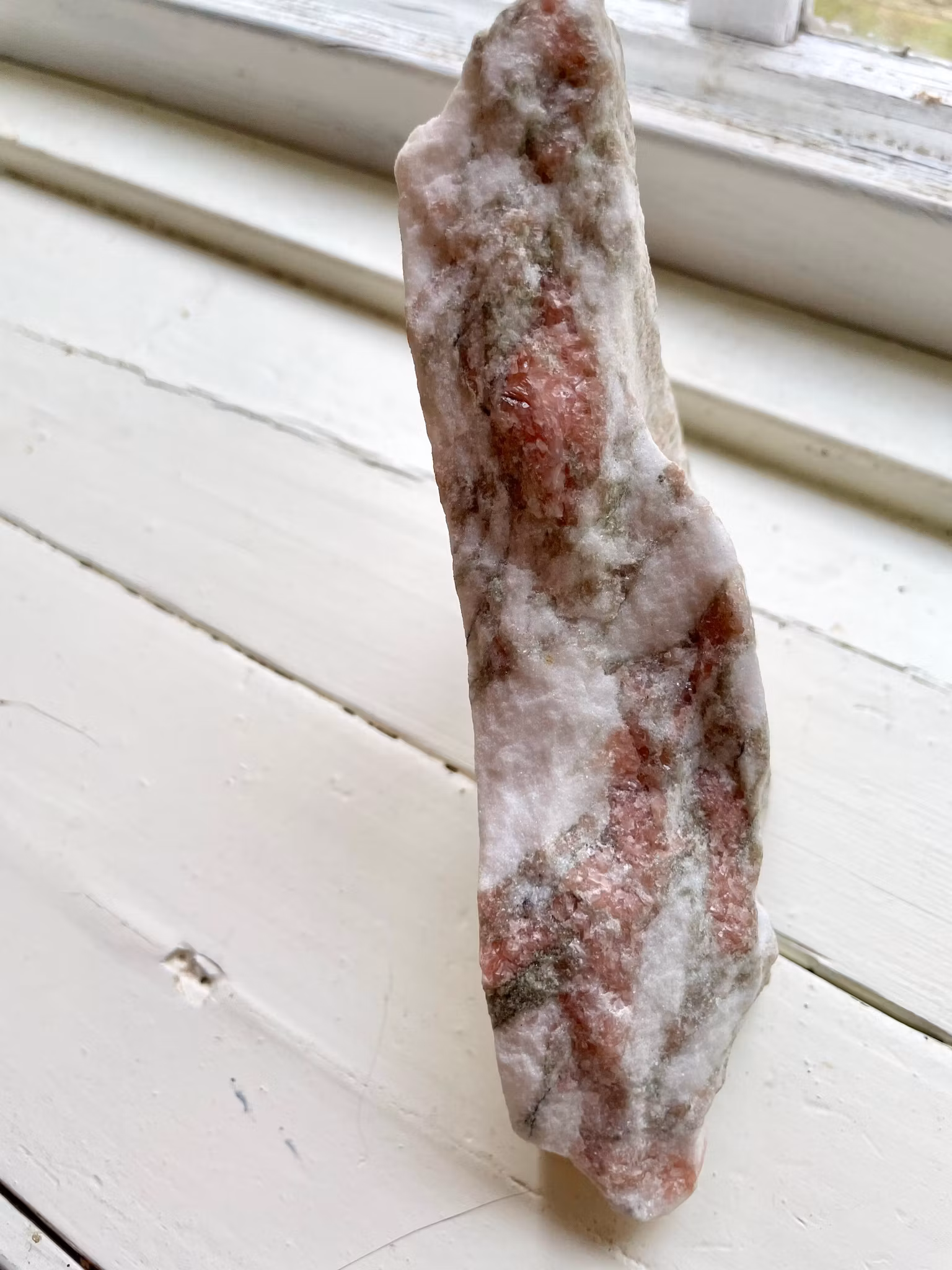 Fin marmorsten som är slipad på ena sidan och väger hela 702 gram.