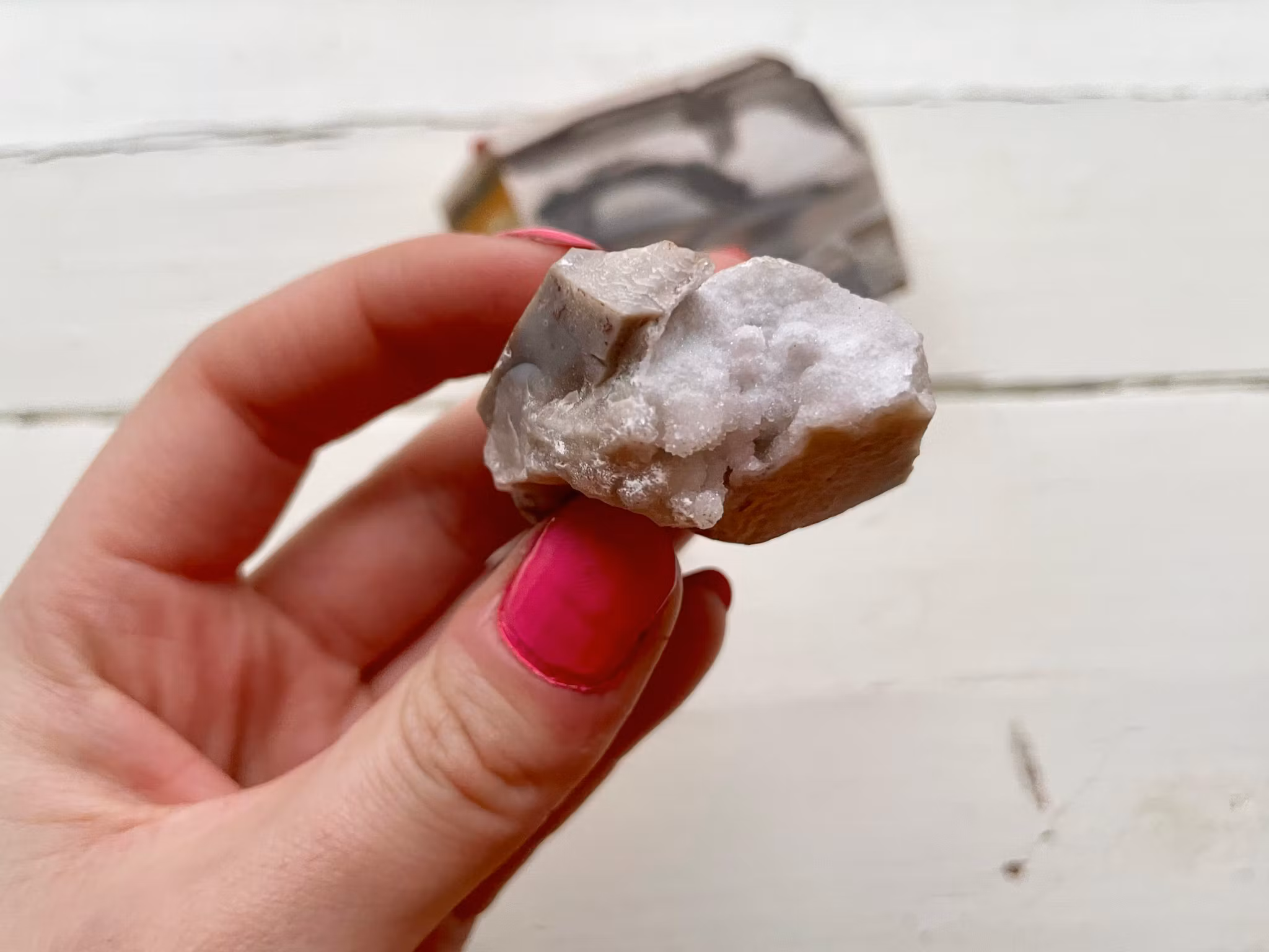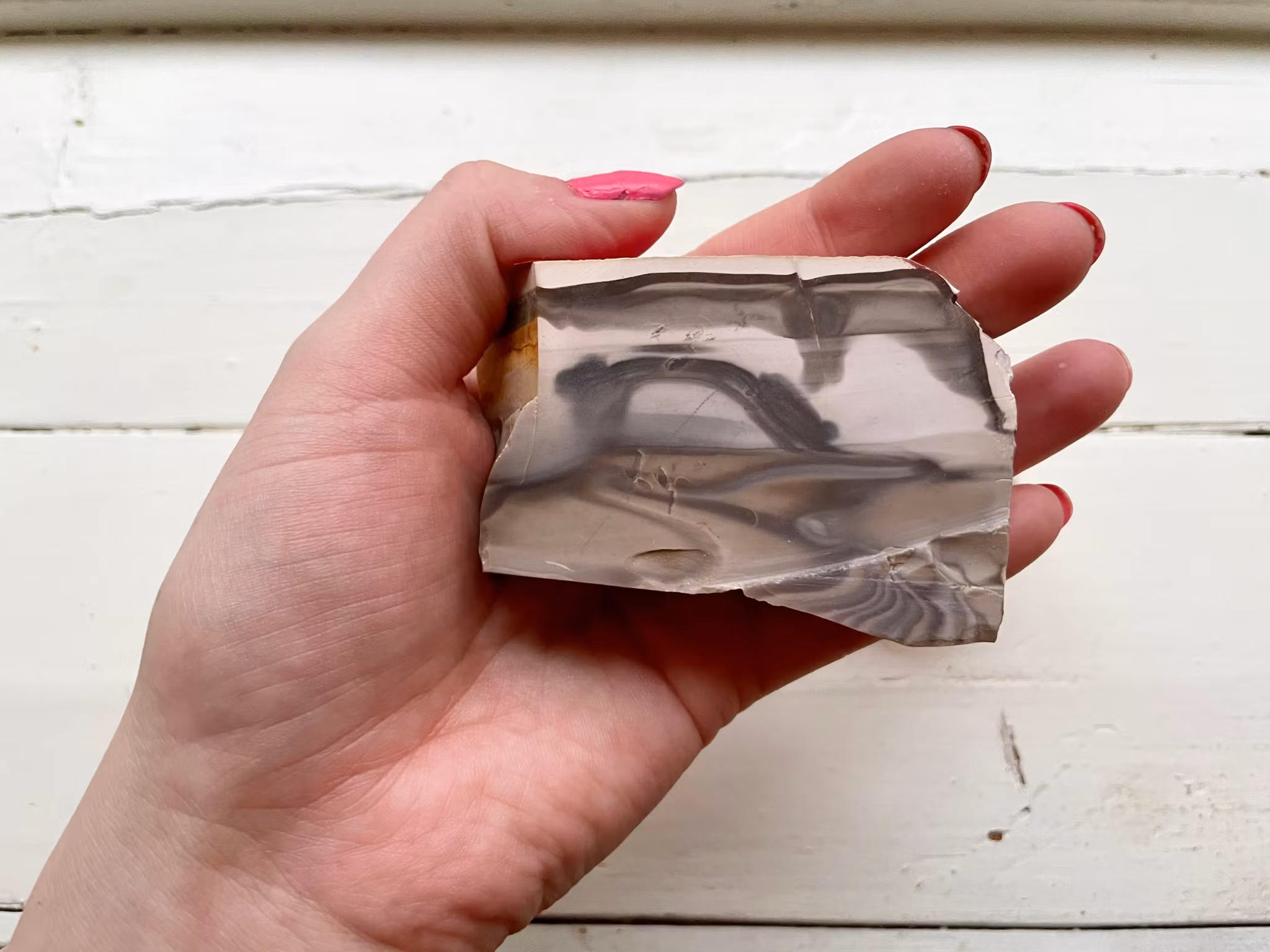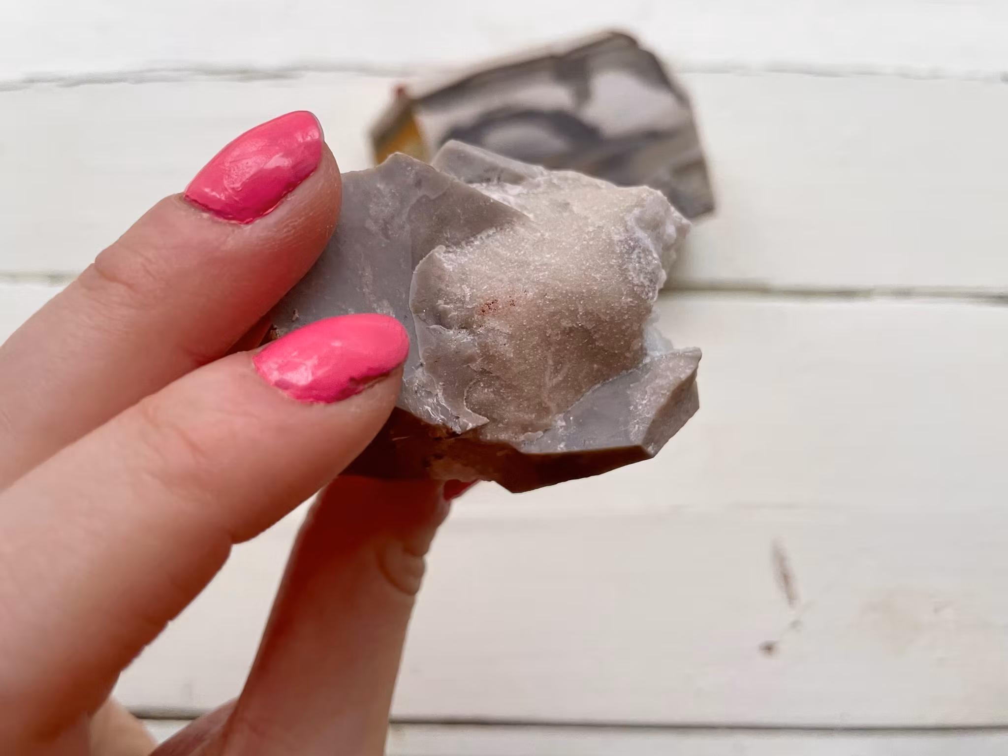 Fina flinta stenar i olika former och färger. Flintan som väger 21g är upphittad i Limhamn. Flintan / bergkristallen som väger 50g är upphittad i Ivarnby. Flintan som väger 147g är upphittad i Polen.
