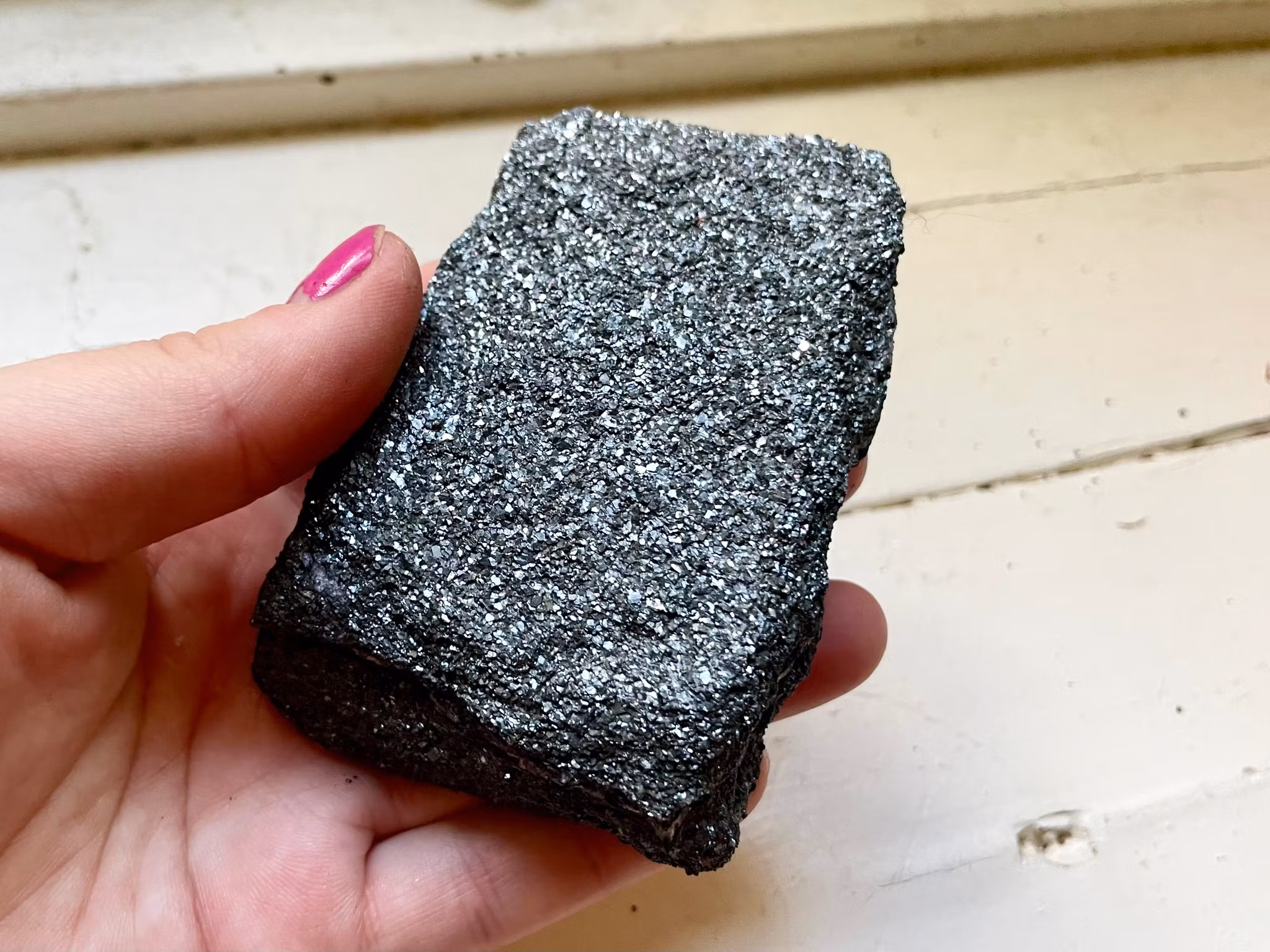 Fina glittriga Hematit i olika storlekar. Den som väger 146g gram är upphittad i Rönnarp Sverige och den som väger 336 gram är upphittad i Blötberget.