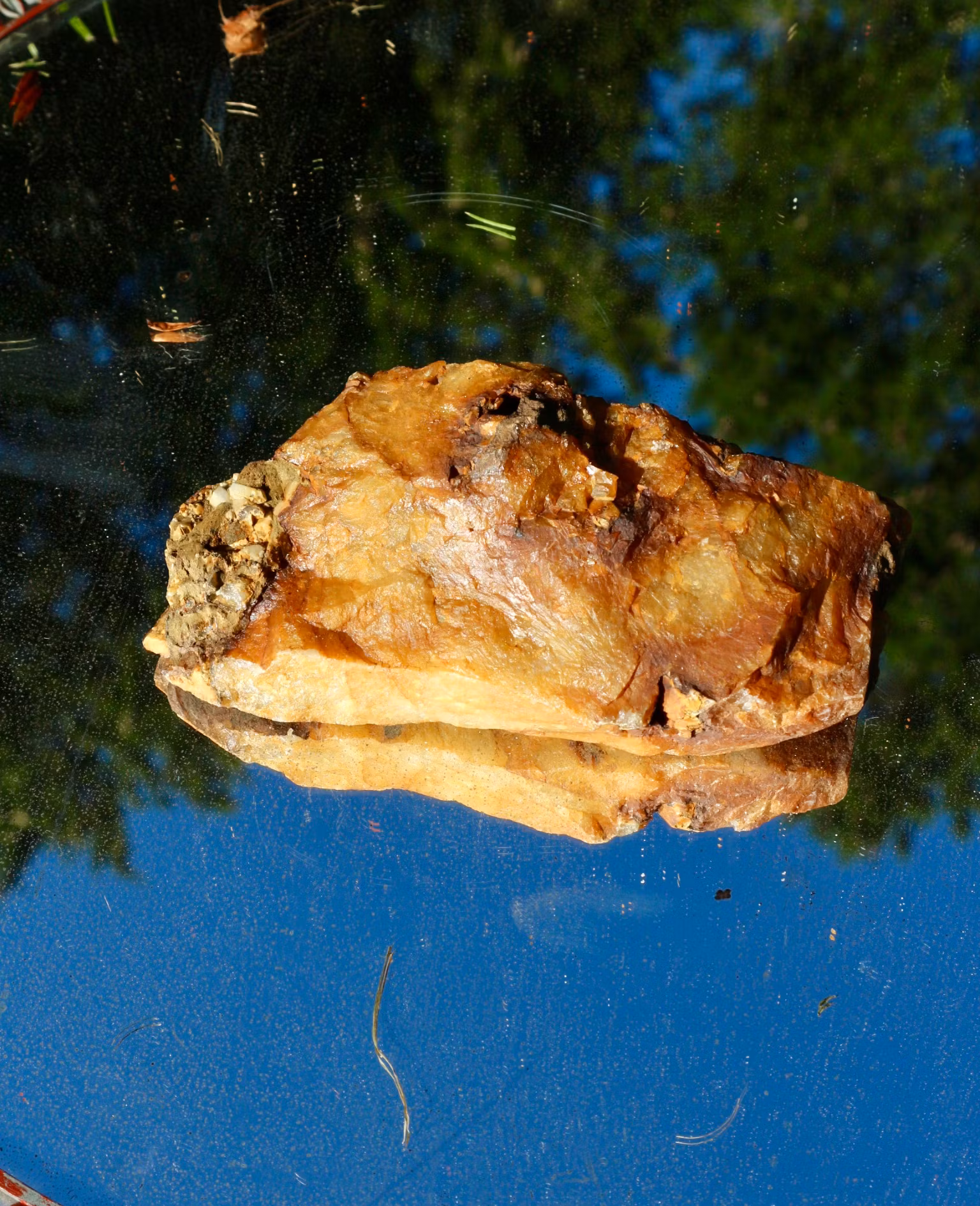 Rå karneol med små kristaller i storleken 510g och 15x4cm.