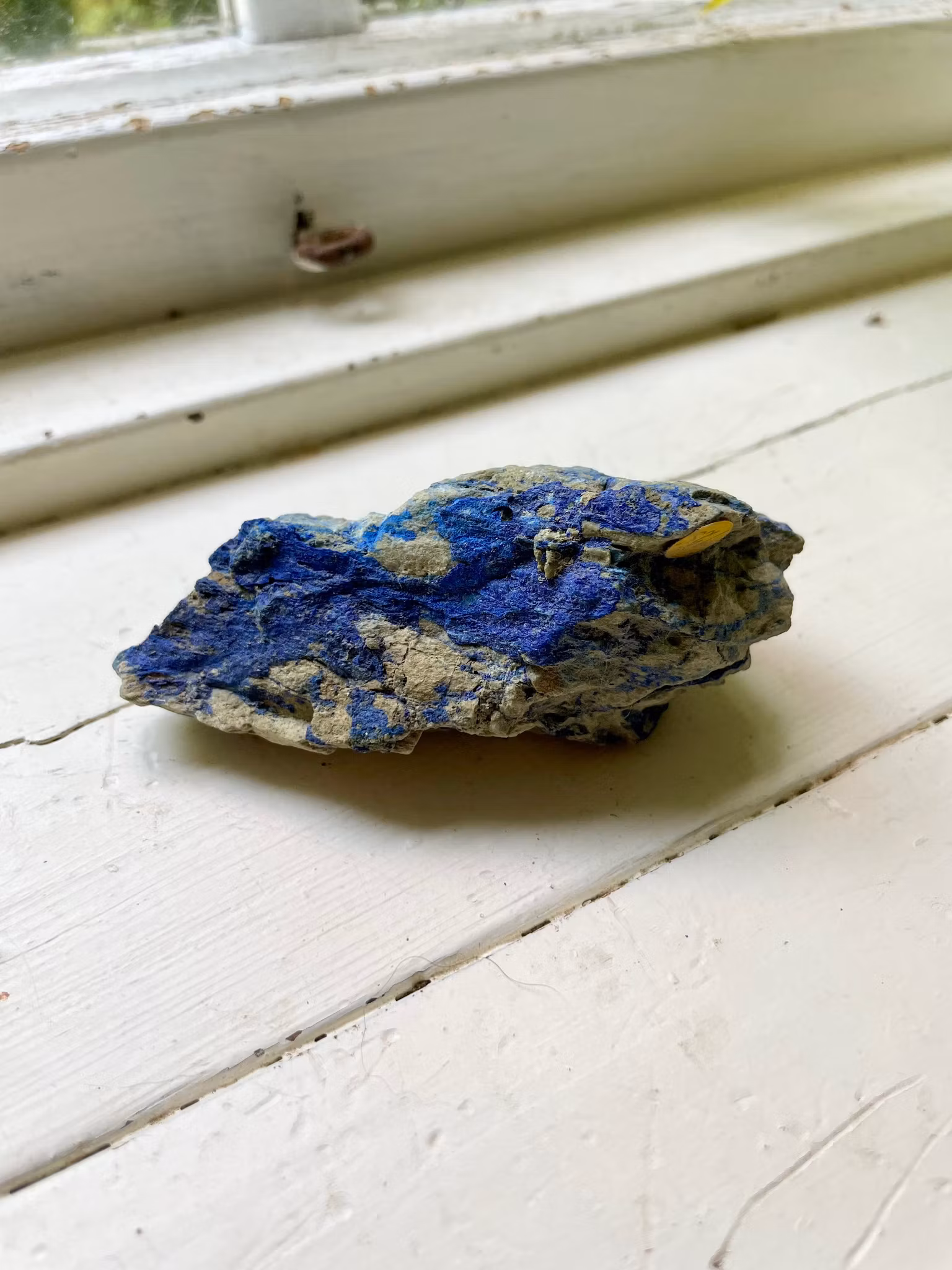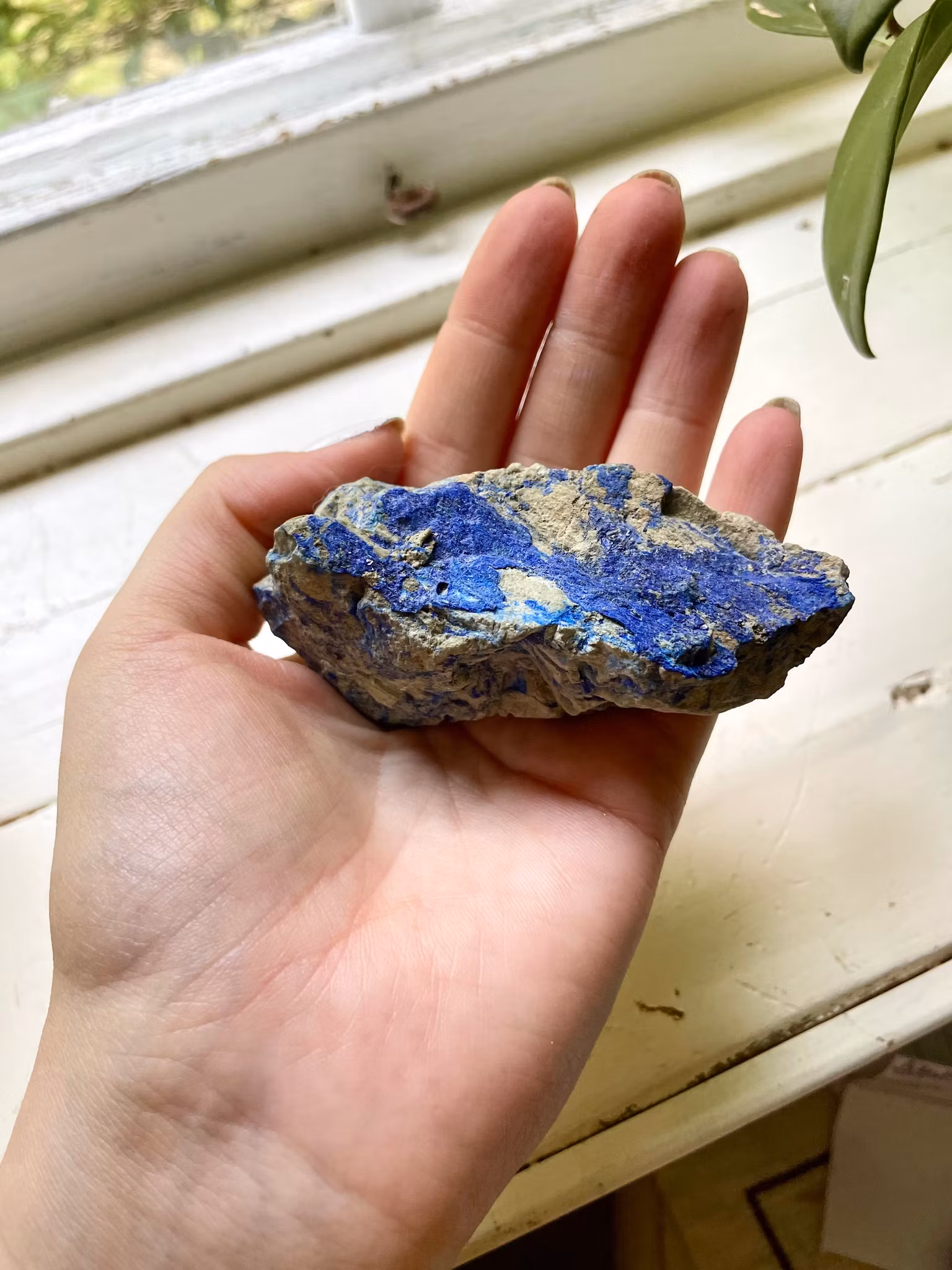 Fin blå Azurit i storleken 89 gram och 9x4,5cm stor.
