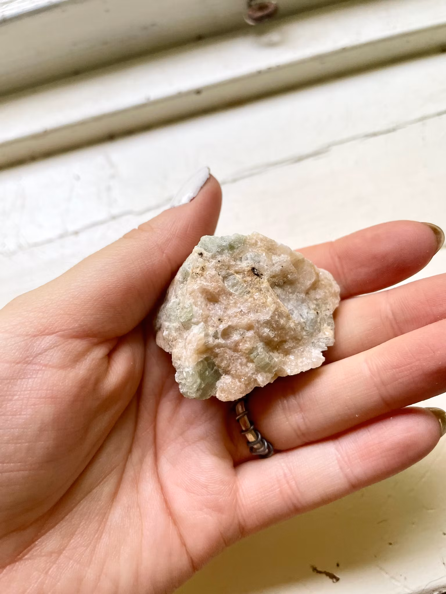 Fin grön flourapatite kristall med ursprung från Finland i storlek 42 gram och 4x4cm stor.