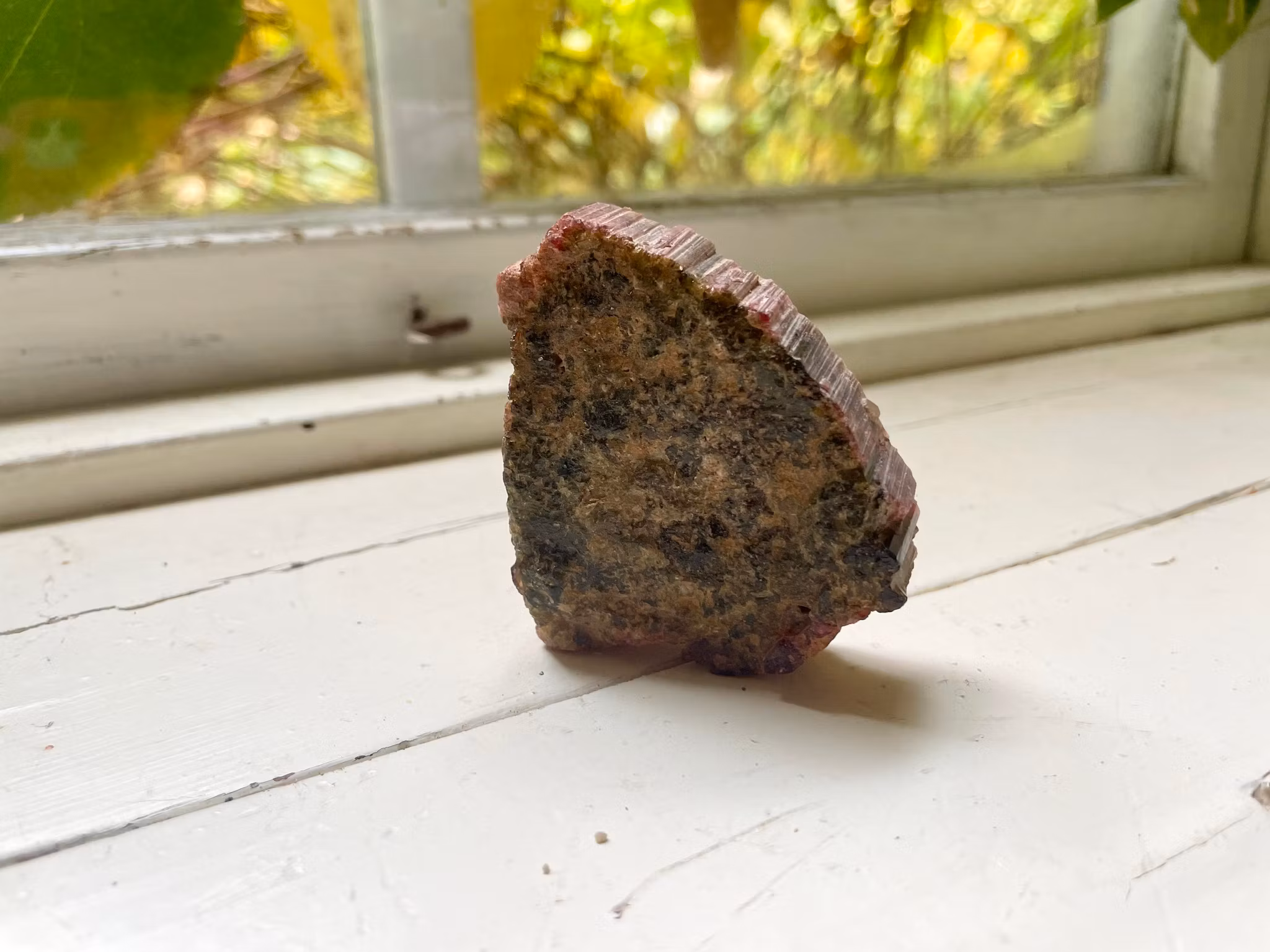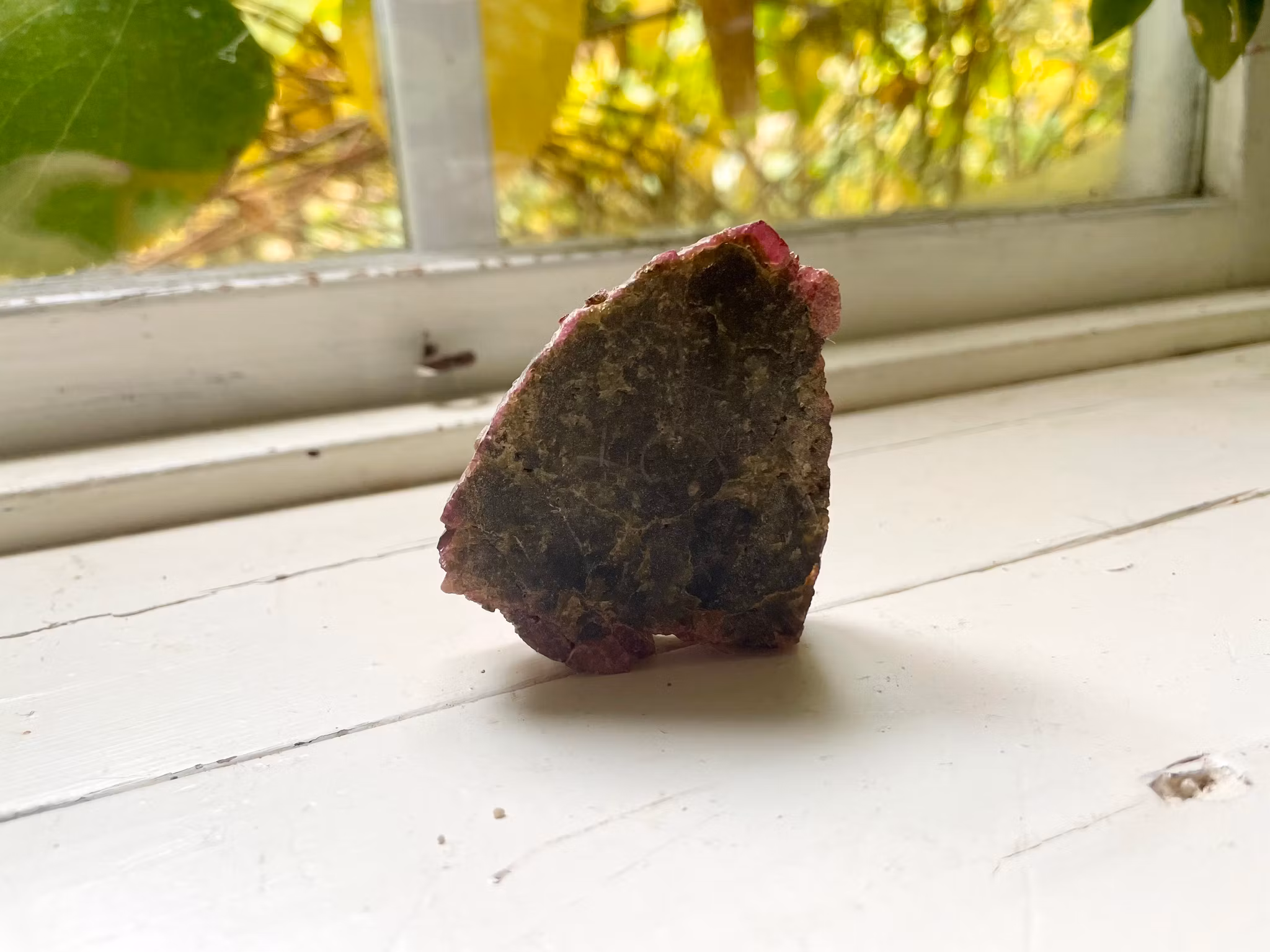 Fin Turmalin skiva i färgerna grön och röd, som väger 95 gram.